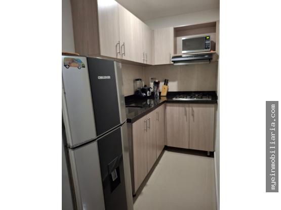 Apartamento en venta en Los Alcázares, Sabaneta, de 49 m², que cuenta con 2 habitaciones, 2 baños, cocina integral, sala comedor y zona de ropas.