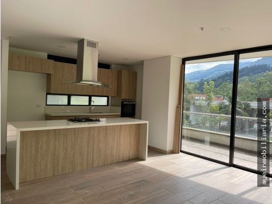 Apartamento en venta en Loma del Escobero con 110 m² construidos y 53 m² de terraza. El inmueble cuenta con 3 habitaciones, un estar o sala de televisión, 3 baños (2 con ducha), zona de ropas, salón comedor y cocina con isla. Además, dispone de 2 parqueaderos independientes y 1 cuarto útil.