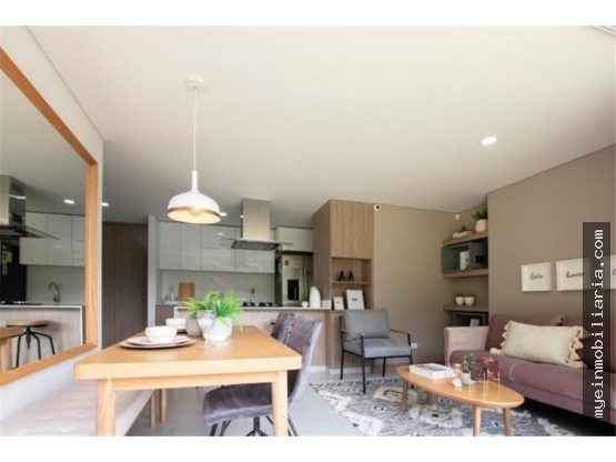 Apartamento en venta en Pan de Azúcar, Sabaneta, de 61.82 m². Cuenta con 2 habitaciones, 2 baños, cocina integral, sala comedor, balcón, vestier, zona de ropas y parqueadero.