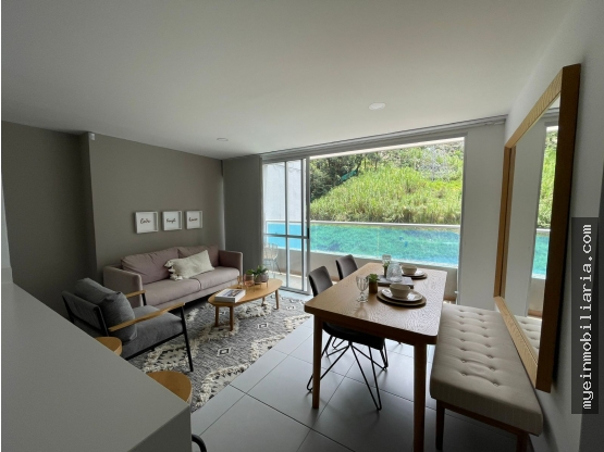 Apartamento en venta en Cesión de Derechos, sector Pan de Azúcar – Sabaneta, con un área de 63.77 m². Cuenta con 2 habitaciones, 2 baños, cocina integral, sala-comedor, balcón, zona de ropas y parqueadero privado.
