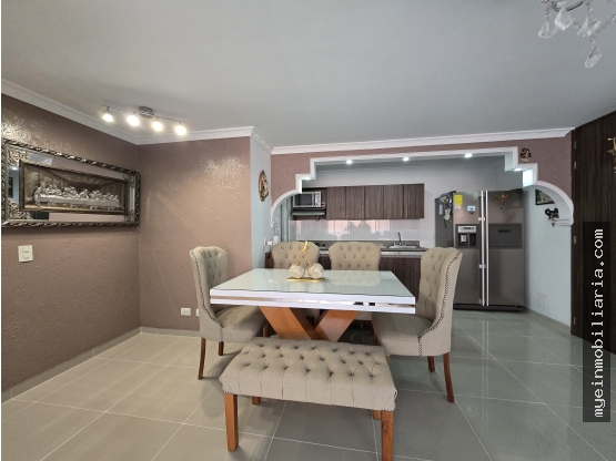 Apartamento en venta en San Joaquín Sabaneta cuenta con 3 habitaciones y 2 baños,  cocina integral,  sala-comedor amplia, balcón con hermosa vista. La habitación principal dispone de vestier, baño privado y acceso a un balcón cabinado con torre de lujo. Además, hay 2 habitaciones auxiliares, cada una con su respectivo clóset, y un baño social cabinado. La zona de ropas es amplia, y se incluye parqueadero privado y un cuarto útil espacioso.