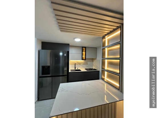 Apartamento en venta en El Trapiche Bello, con un área de 75 m². Cuenta con 3 habitaciones amplias, 2 baños modernos, habitación principal con vestier, sala comedor, cocina integral en piedra sintetizada con excelente iluminación natural, zona de ropas independiente y parqueadero para carro.
